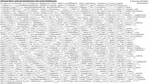Und dann sieht man, daß der Absenderin ein mehr als peinlicher Anfängerfehler passiert ist. Sie hat diese Einladung an knapp 300 Personen verschickt und den Fehler begangen, alle Mailadressen direkt oben in die erste Adresszeile zu schreiben und nicht ins BCC, wie es sich gehören würde.